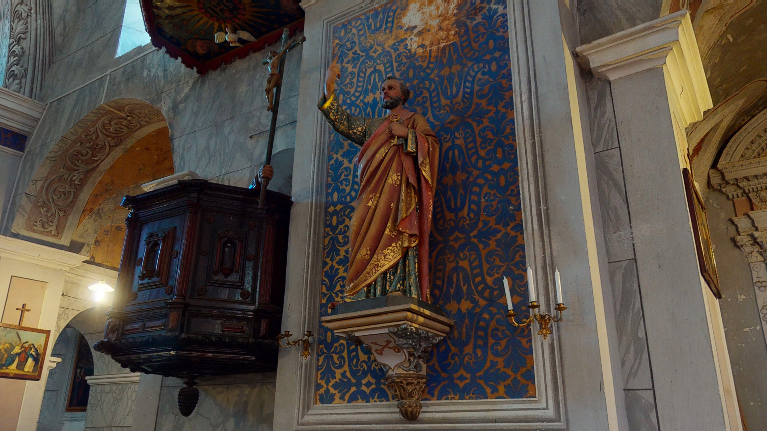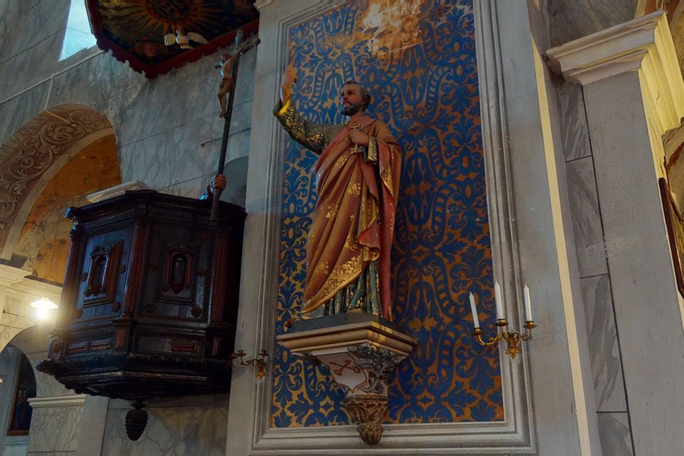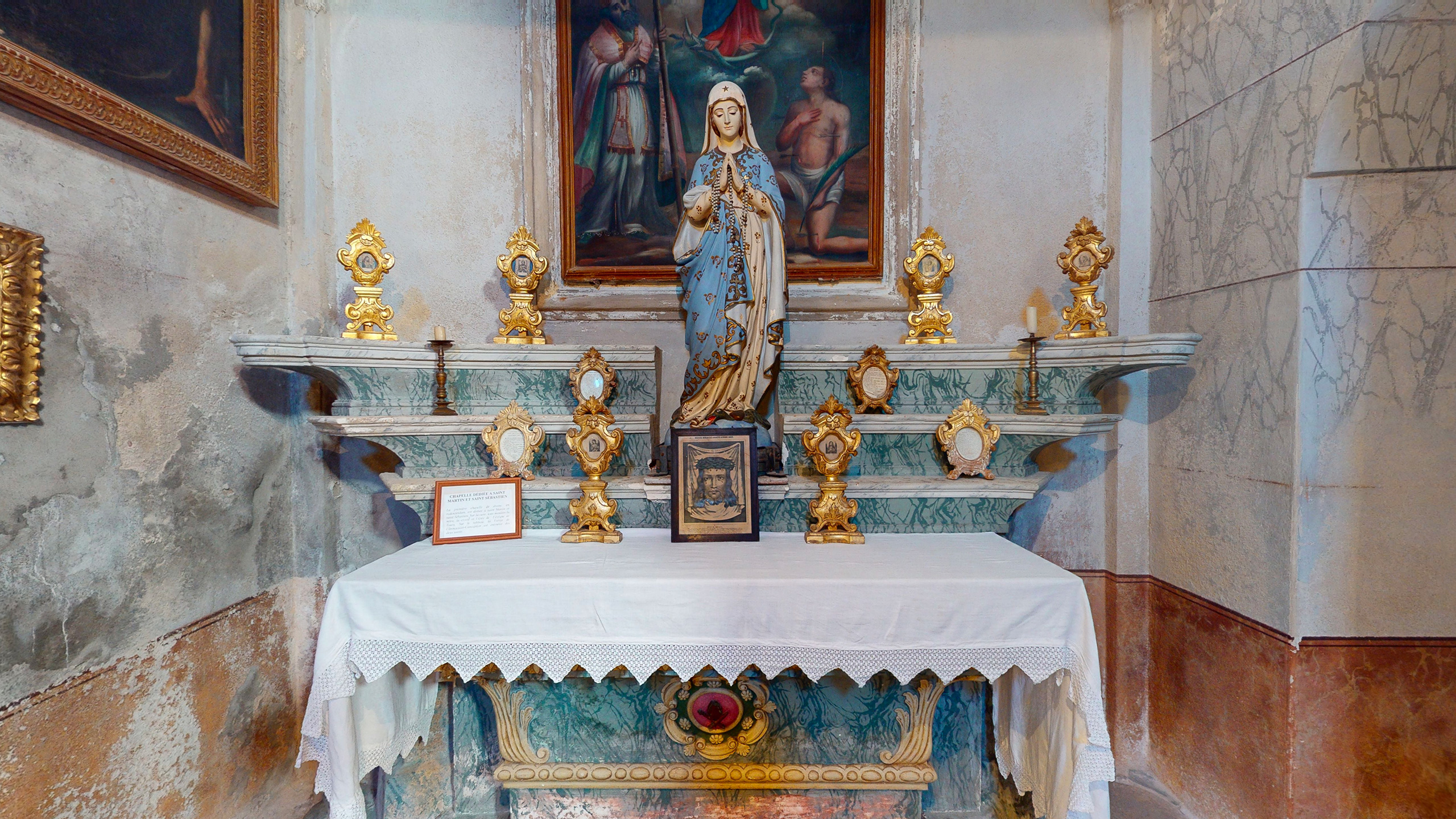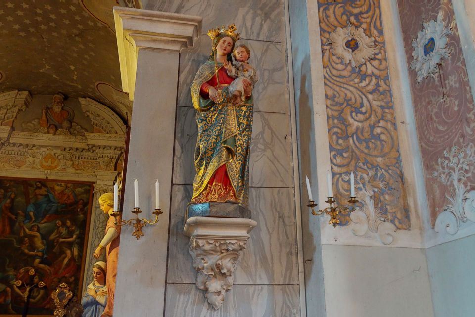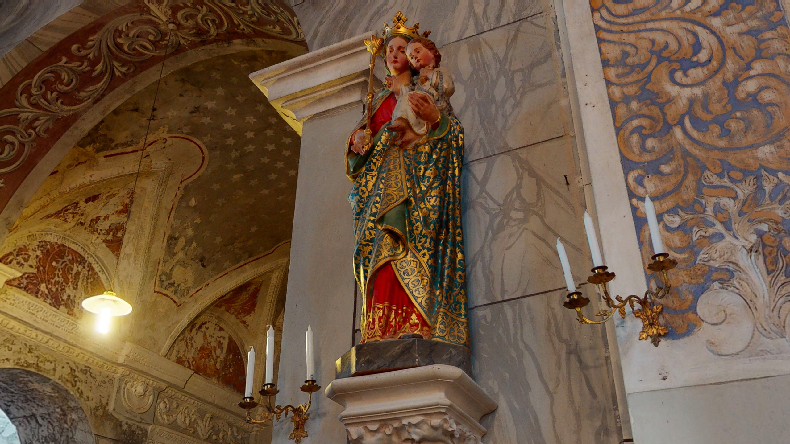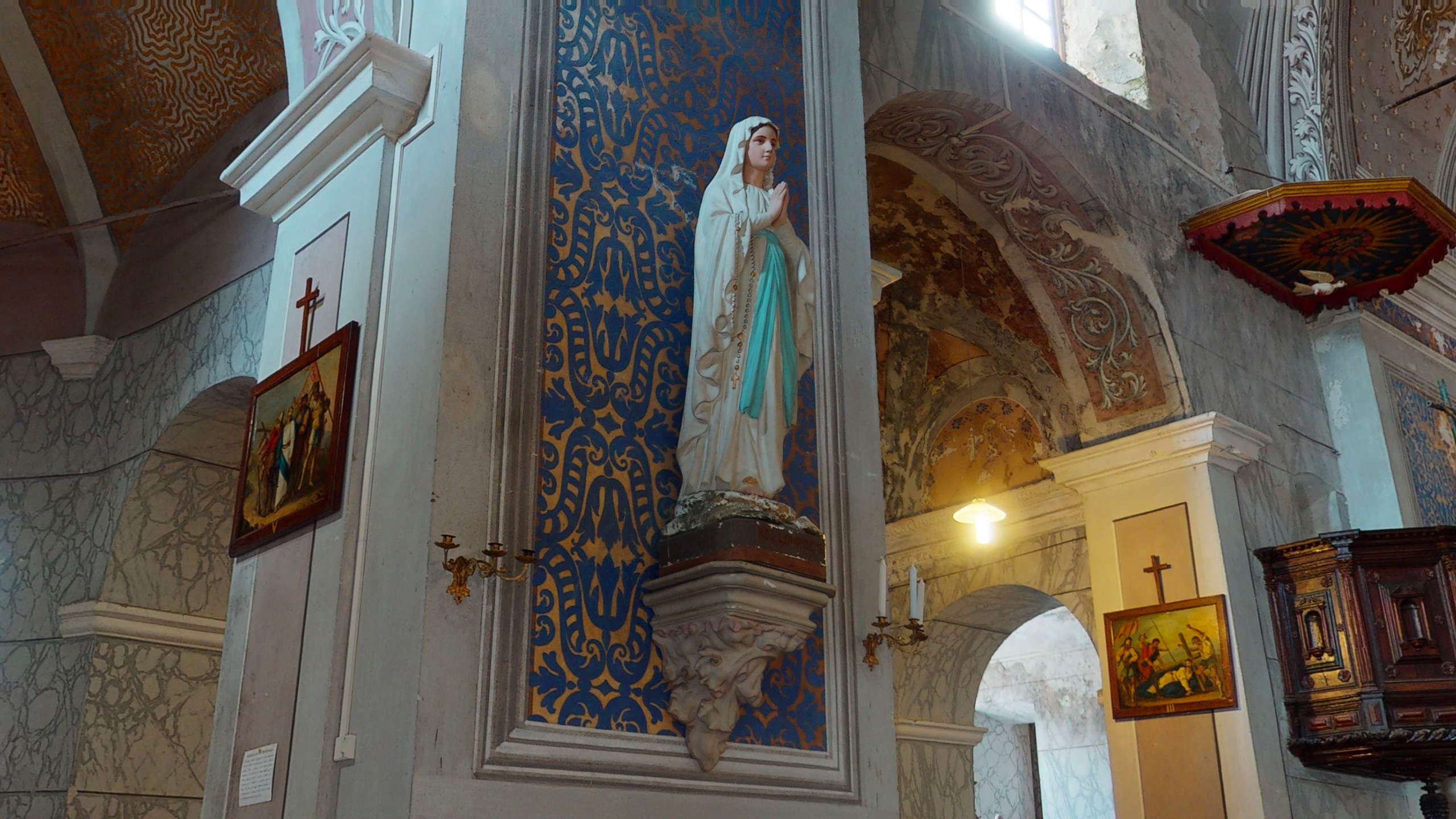 Notre Dame de Lourdes, Sacré-Coeur, Saint Pierre, la Vierge à l’enfant.